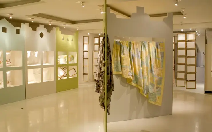 A linha de produtos apresentada nesta mostra compreende almofadas, toalhas de mesa e de lavabo, jogos americanos, guardanapos, colchas, cortinas, marcadores de livro, entre outras peças.