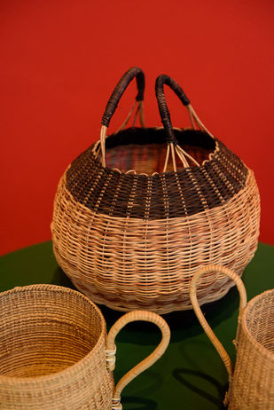 Outro elemento importante dessa cultura material, a trama indígena também compõe a exposição, dando origem a itens do dia a dia, como cestos, redes de pesca, tapetes, balaios, vasos – todos trançados, formando infinitos desenhos, com as matérias-primas da floresta.